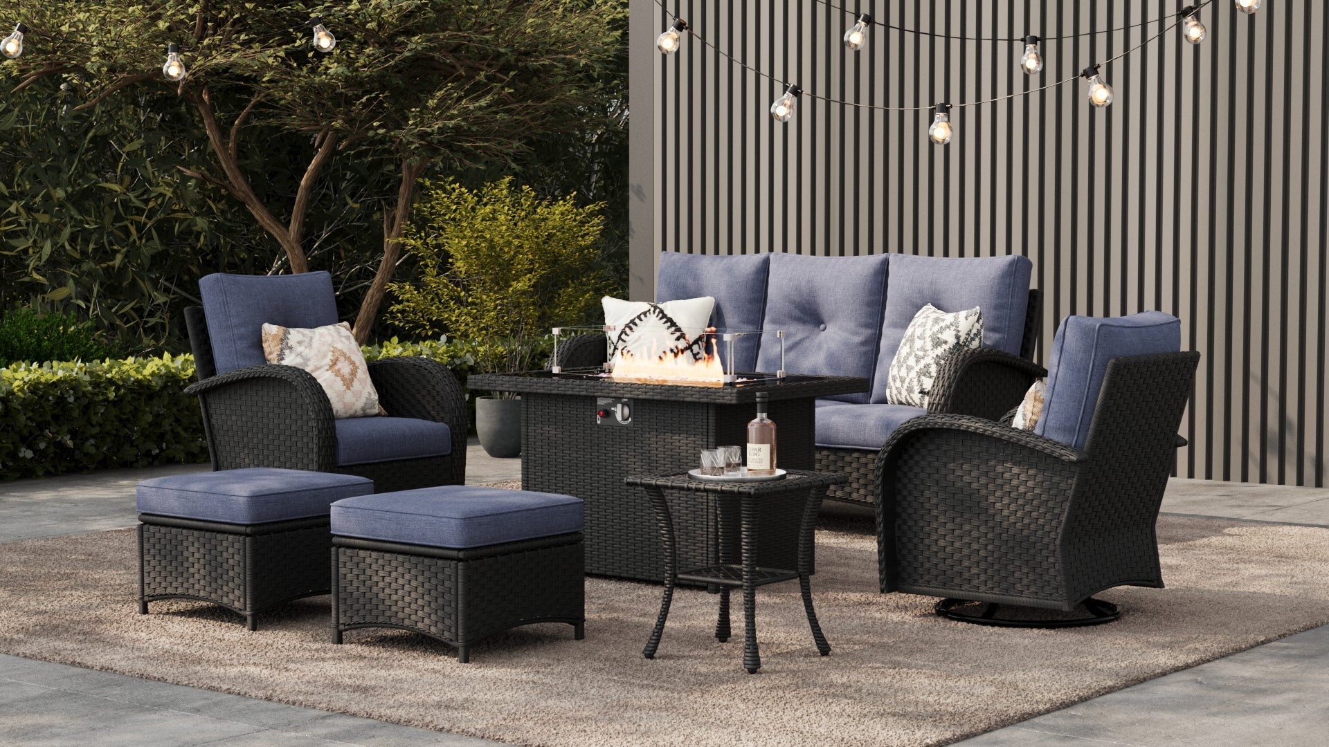LayinSun 10 - Piece Outdoor Wicker Swivel Chairs Conversation Set with Fire Pit Table