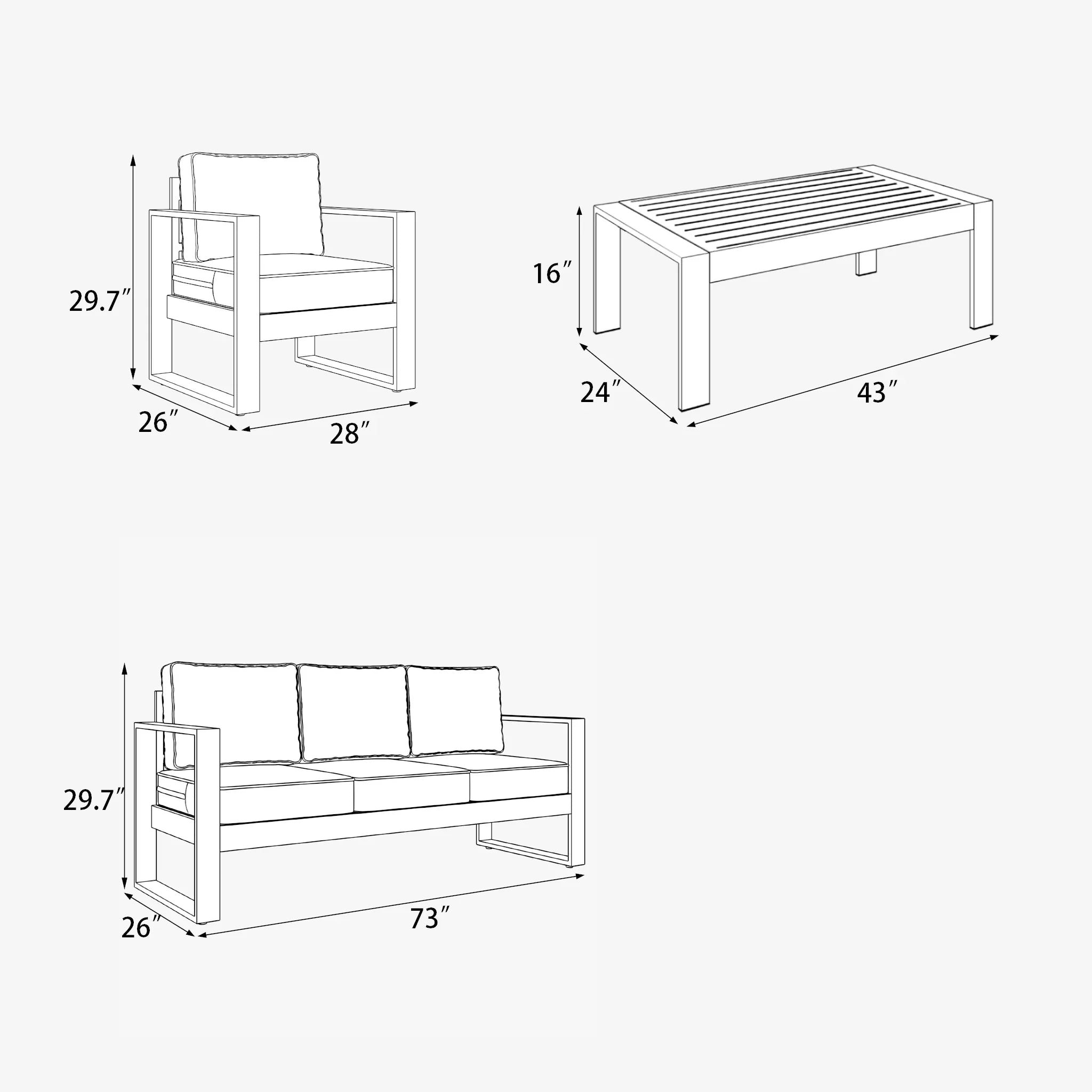 LayinSun 4 Piece Hight Back Aluminum Outdoor Sofa Set with Coffee Table