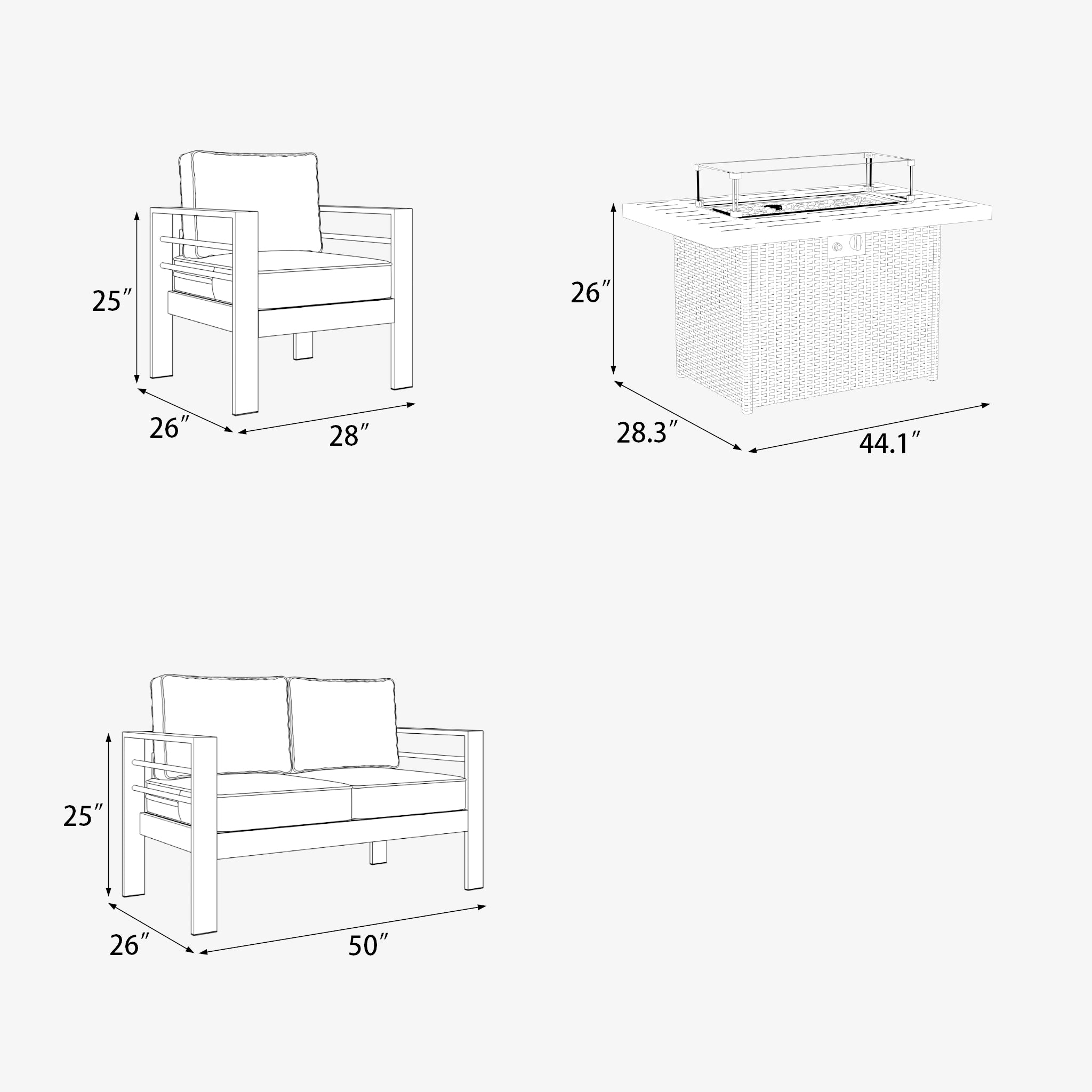 LayinSun 4 - Piece Outdoor Aluminum Loveseat Set with 44'' Propane Gas Fire Pit Table
