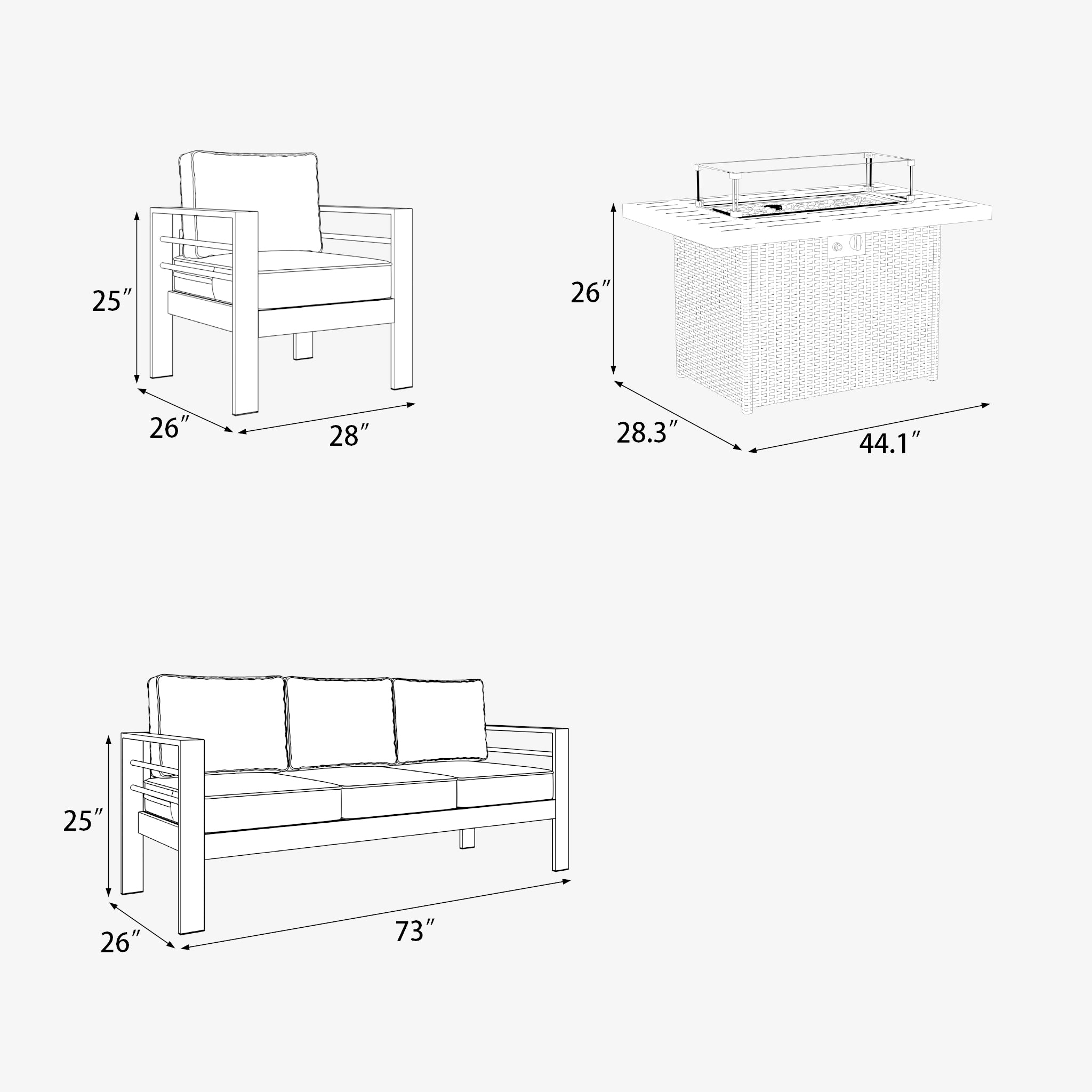 LayinSun 4 - Piece Outdoor Aluminum Sofa Set with 44'' Propane Gas Fire Pit Table