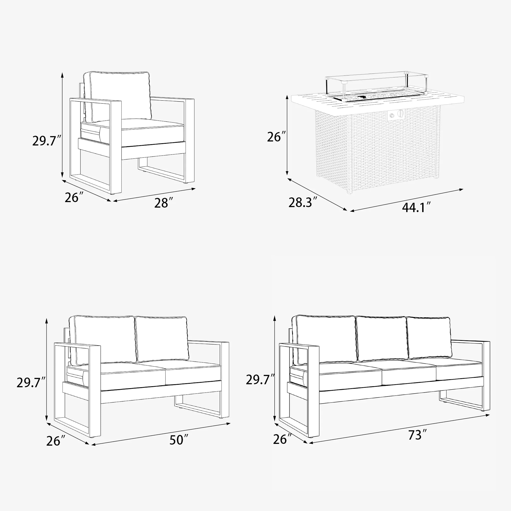 • Come with 44 inch Propane Gas Fire Table (propane tank not included).