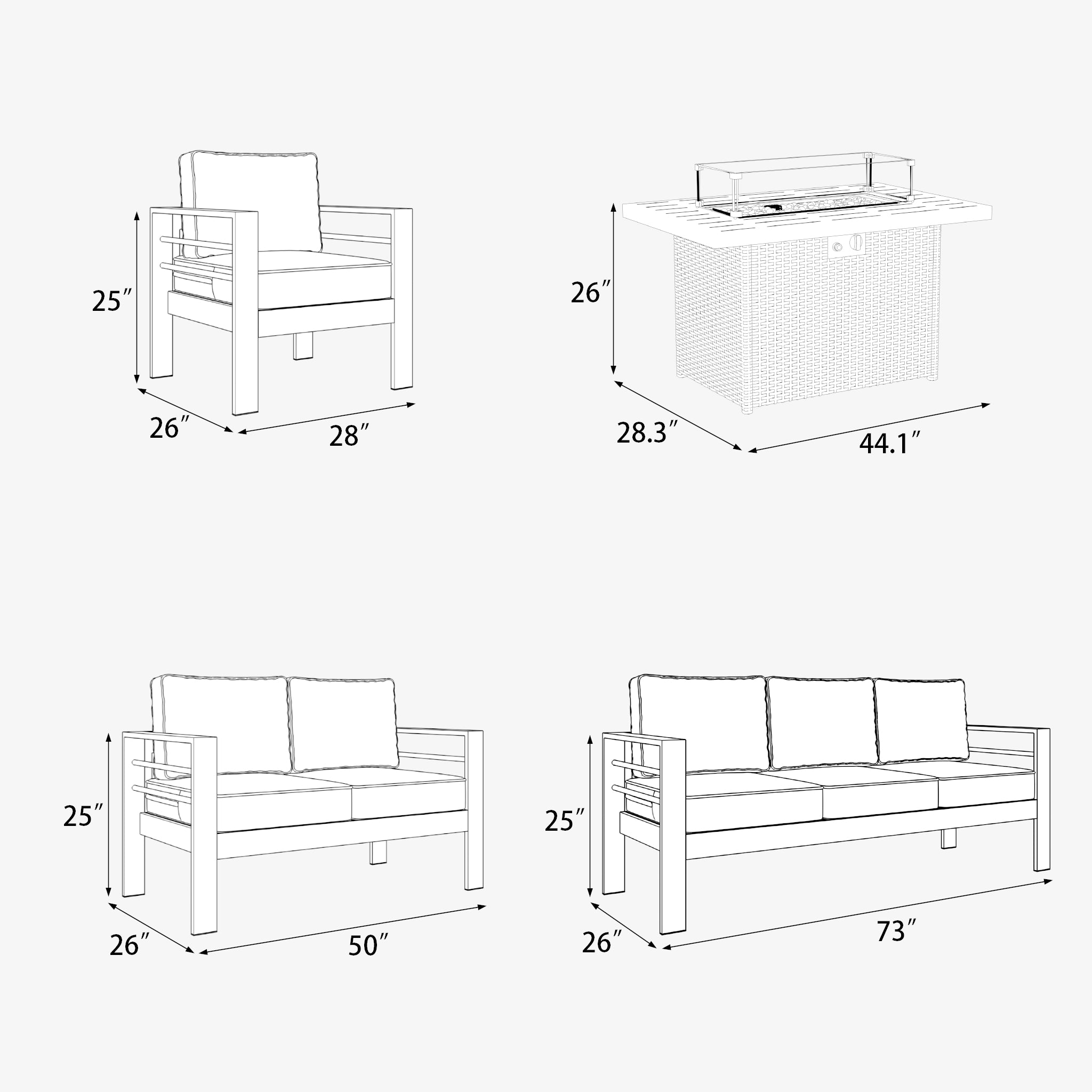 Enjoy the simple elegance of its cushions, gentle angles, and minimalist design that is perfect for patios - large and small. A lightweight and durable aluminum frame is an excellent choice for any relaxed outdoor living space. The cushions with quick-drying, and UV-treated to create a supportive, yet comfortable seat that is meant to last throughout the seasons.