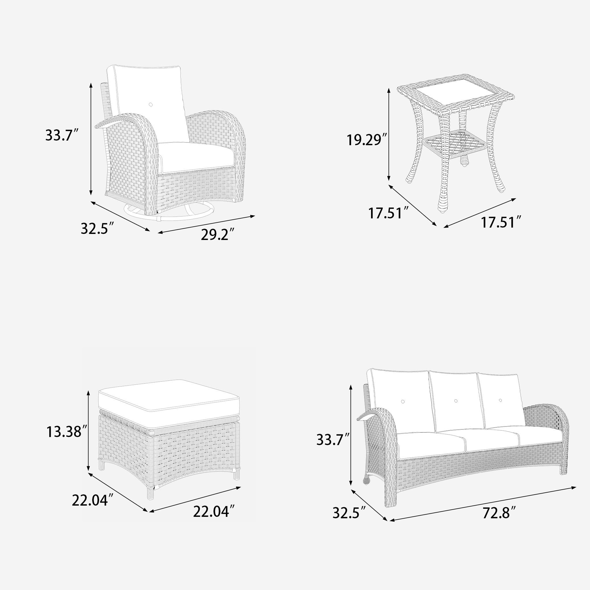 LayinSun 6 - Piece Curved Armrest Wicker Swivel Glider Lounge Chairs & Sofa Set